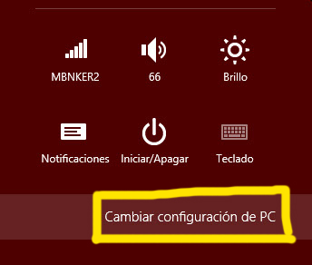 Abrir la barra de "charms" (deslizando el ratón -o el dedo en pantallas táctiles-, hacia la esquina superior derecha). Seleccionar el ícono del engrane, correspondiente a configuración.